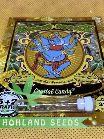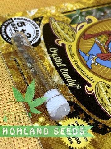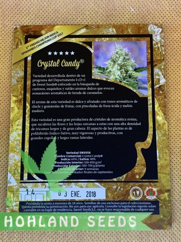 Crystal Candy от Sweet Seeds – феминизированное поколение гибридов каннабиса, который дает марихуану со вкусом, напоминающим жвачки и леденцы. В феминизированном гибриде Crystal Candy преимущество имеют гены Индики (60%), хотя и Сатива при употреблении вполне ощутима. Показатель ТГК в этом поколении Кристал Кенди достигал 20% при выращивании в оптимальных условиях. А минимальный показатель, зафиксированный в менее благополучных для вегетации условиях, составлял 15% содержания ТГК.