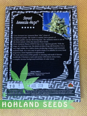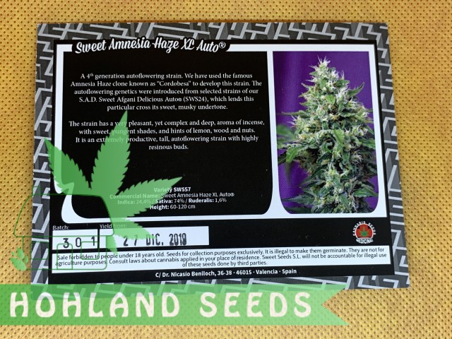 Sweet Amnesia Haze XL Auto от Sweet Seeds – автоцветущий штамм, самого последнего – четвертого поколения, доступный на полках нашего интернет-магазина Hohland Seeds. Для разработки этого штамма производитель использовал знаменитый клон Amnesia Haze, известный в Испании как «Cordobesa» (Мордовский).