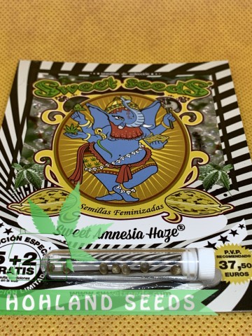 Это чрезвычайно продуктивный сорт, который в опытных руках может дать больше 200 гр/растения сухого продукта, благодаря энергичному развитию и высокому росту. Если хотите купить лучший Сативны вид конопли, что сейчас доступен на рынке, то Свит Амнезия Хейз от Свит Сидс восполнит все ваши ожидания и может стать хорошим выбором для промышленных производителей. Автоцветущий сорт с очень смолистыми почками всегда вызывает восхищение. В его основе: